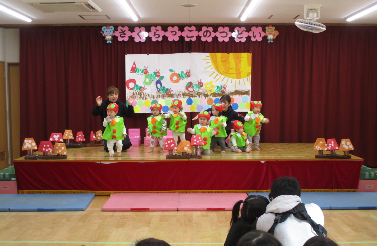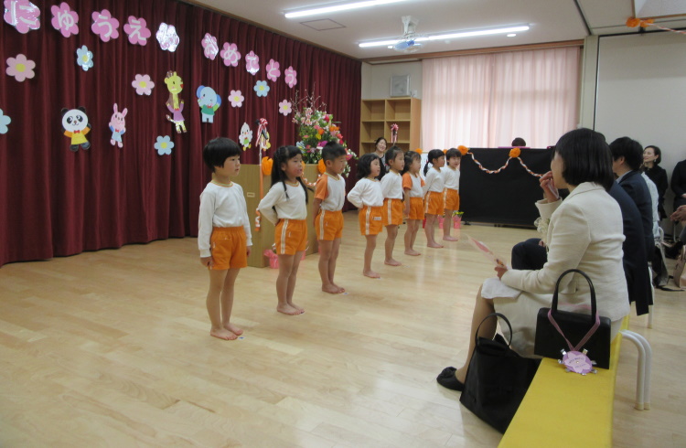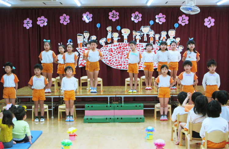 ご入園おめでとうございます!入園式では、5歳児の子どもたちが年長児として初のお仕事。おいわいのことばと歌のプレゼントをしてくれました。明日からは、新入園児さんもお迎えしての保育が始まります。元気にいっぱい遊ぼうね。