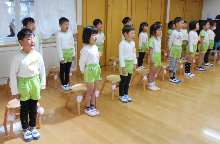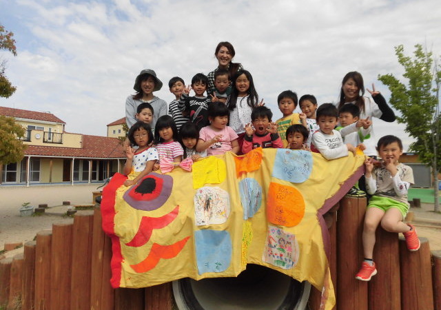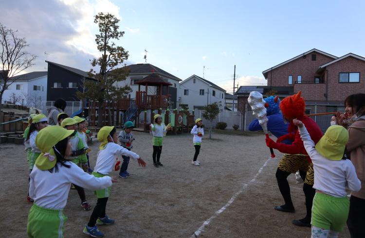 3園の子どもたちが集まって、しっぽとりやオセロ遊びを楽しみました。園対抗リレーでは、みんなで力を合わせてなんと優勝しましたよ!優勝旗とメダルをもらい「みんなでがんばった」「いえかえってみせる」と、とても嬉しそうでした。 優勝旗は玄関上に飾っているので是非見てくださいね。