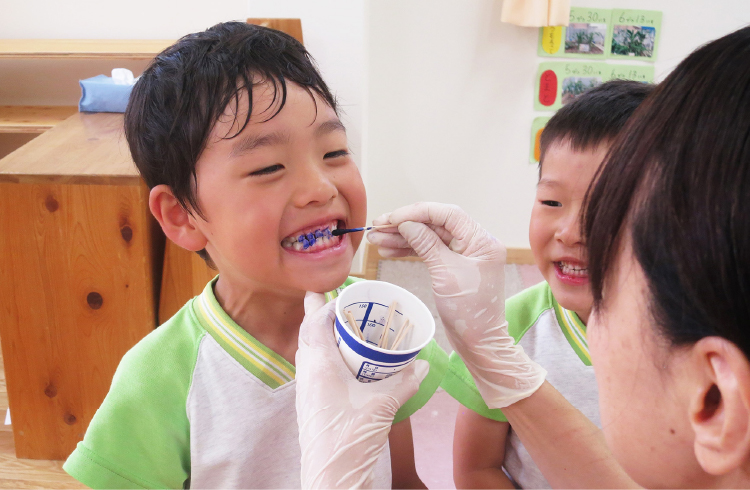 明日からおひさまさん(1号さん)は夏休み。終わりの会で、夏休みの過ごし方や「虫のお医者さん」のお話を聞き、命の大切さや虫との関わり方を学びました。 おやつには保護者会費で頂いたかき氷を食べました。「つめたーい。おいしい」と子どもたちは色づいた舌を見せ合いおいしそうに食べていましたよ。